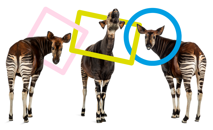Así que, para compensar, elegimos como mascota un Okapi, un bicho con rasgos de cebra, antílope y jirafa.